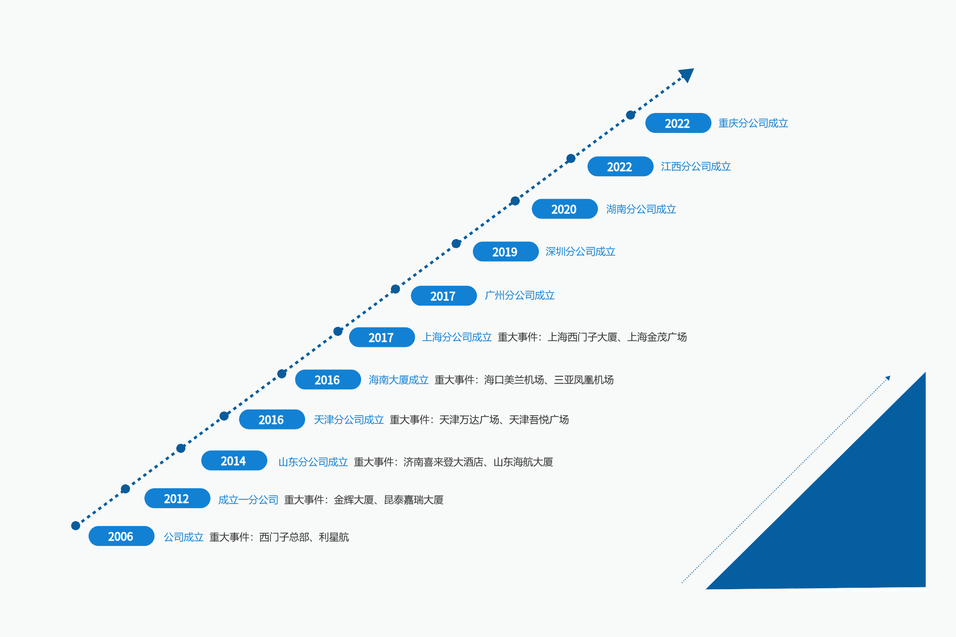 公司自成立之日起,在全体员工的共同努力下,公司规模不断的发展壮大,管理日趋完善,公司现如今承接了上百个多种业态的日常及定期清洁项目。其中包括写字楼、商场、高档社区、外资工厂、医院及学校等。公司分别在天津、山东、河北、海南、上海等地设立了分公司,扩大了市场范围。